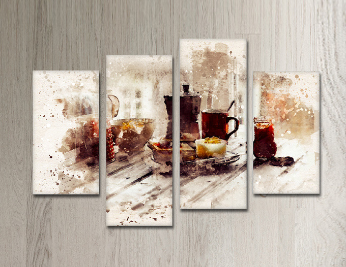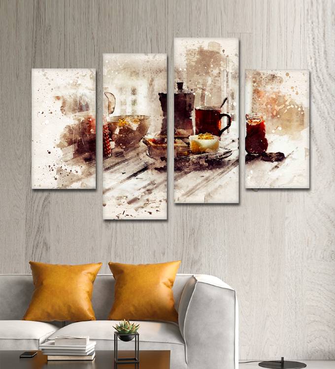 SV 053 لوحة جدارية مقسمة الى 4 قطع مطبوعة على خامة الكاتفاس ومشدودة على اطارات خشبية ، الحجم الكلي 150 في 100 سم موديل